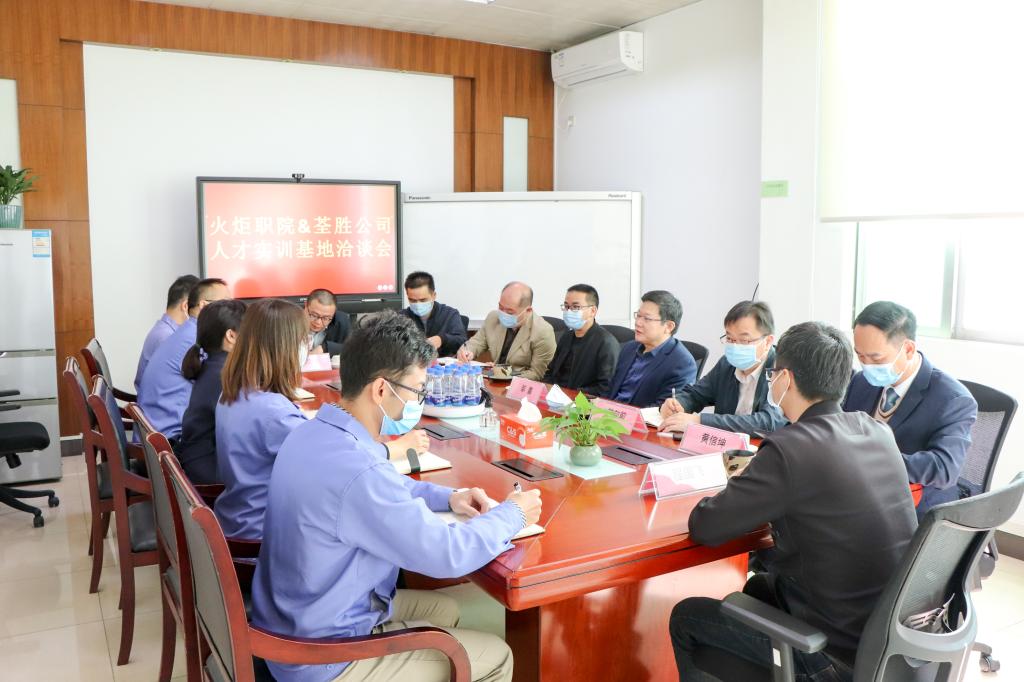 学校办公室、教务处、创业学院、产学研合作中心、装备智造学院相关负责人和教师代表,荃胜精密机械工业(中山)有限公司的人事、行政、产品开发、品质工程等部门负责人参加调研座谈和授牌仪式。