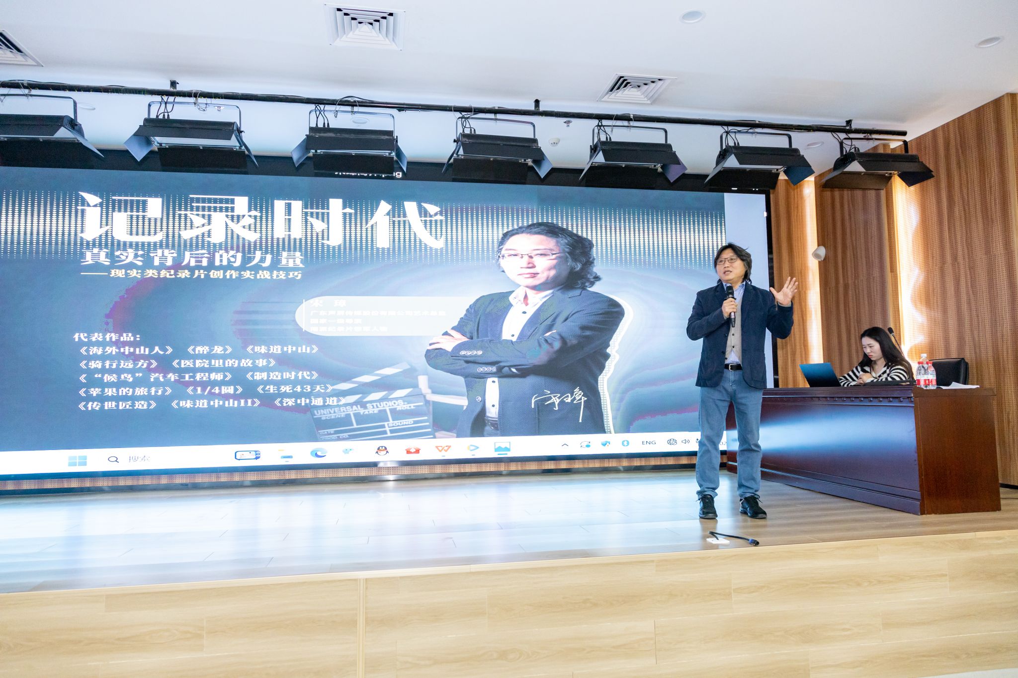 为深入学习贯彻习近平文化思想,传承岭南优秀文化,弘扬时代新风,用优秀文化启智润心、培根铸魂,12月20日上午,我校在惟新楼2楼报告厅举办“真实背后的力量——现实类纪录片创作实战技巧”主题讲座,特邀国家一级导演、南派纪录片领军人物宋璋来校主讲。讲座由组织宣传统战部部长樊向前主持,我校300余名师生参加讲座。
