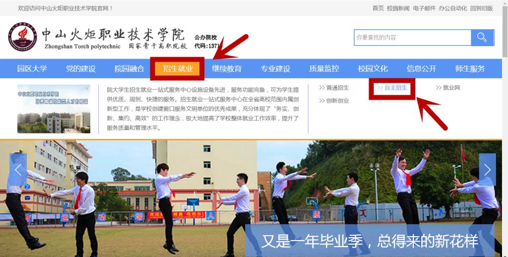 ①打开“海德体育官方网站”官网,把鼠标轻移到“招生就业”,点击“自主招生”。