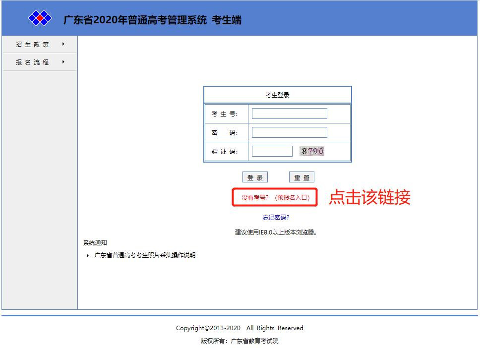 一 、 考 生 登 录 广 东 省 高 职 扩 招 报 名 及 志 愿 填 报 系 统